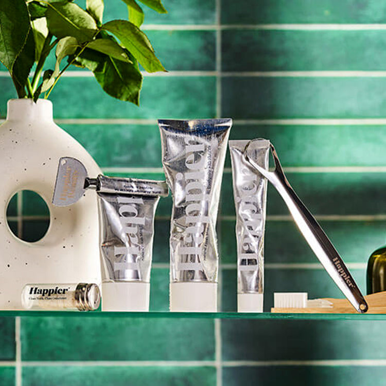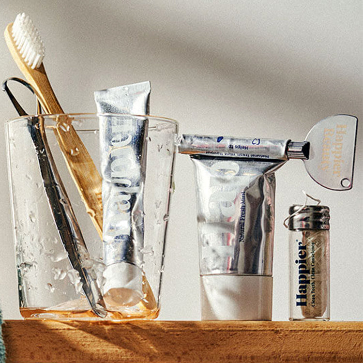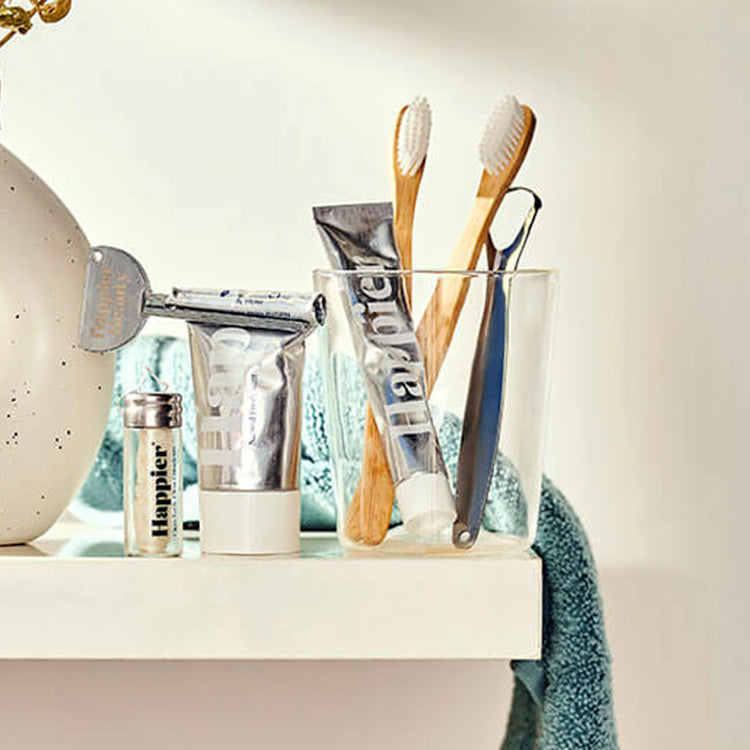 Explore Happier Beauty's latest oral health accessories designed with sustainability in mind. From Stainless Steel Tongue Cleaner to Biodegradable Floss and Bamboo Toothbrush, enhance your routine sustainably.
